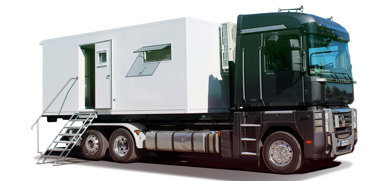 Ein was? Ein mobiles Office, in welchem digitale Daten mit forensischen Computer-Tools “kalt geklont” und anschließend analysiert werden. Alles bei enormer Transfer-Geschwindigkeit und autark sollte der LKW übrigens auch sein. Da versteht man doch nur Bahnhof. Egal, wir mussten uns zum Glück nur um das Design und den Ausbau kümmern. Unser Kunde, die mh-Service GmbH, lieferte dazu die Computerforensische Ausstattung sowie ein eigens entwickeltes Server-Rack, welches auf Luftfpolstern gelagert wird, um Stöße während der Fahrt zu minimieren.
